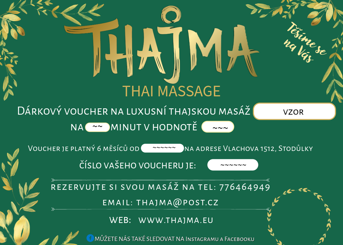 Proplatí vám váš zaměstnavatel masáže? Nabízíme i možnost, vystavení faktury na vámi požadovanou hodnotu. Napište nám prosím email na thajma@post.cz a vše v rychlosti dořešíme.